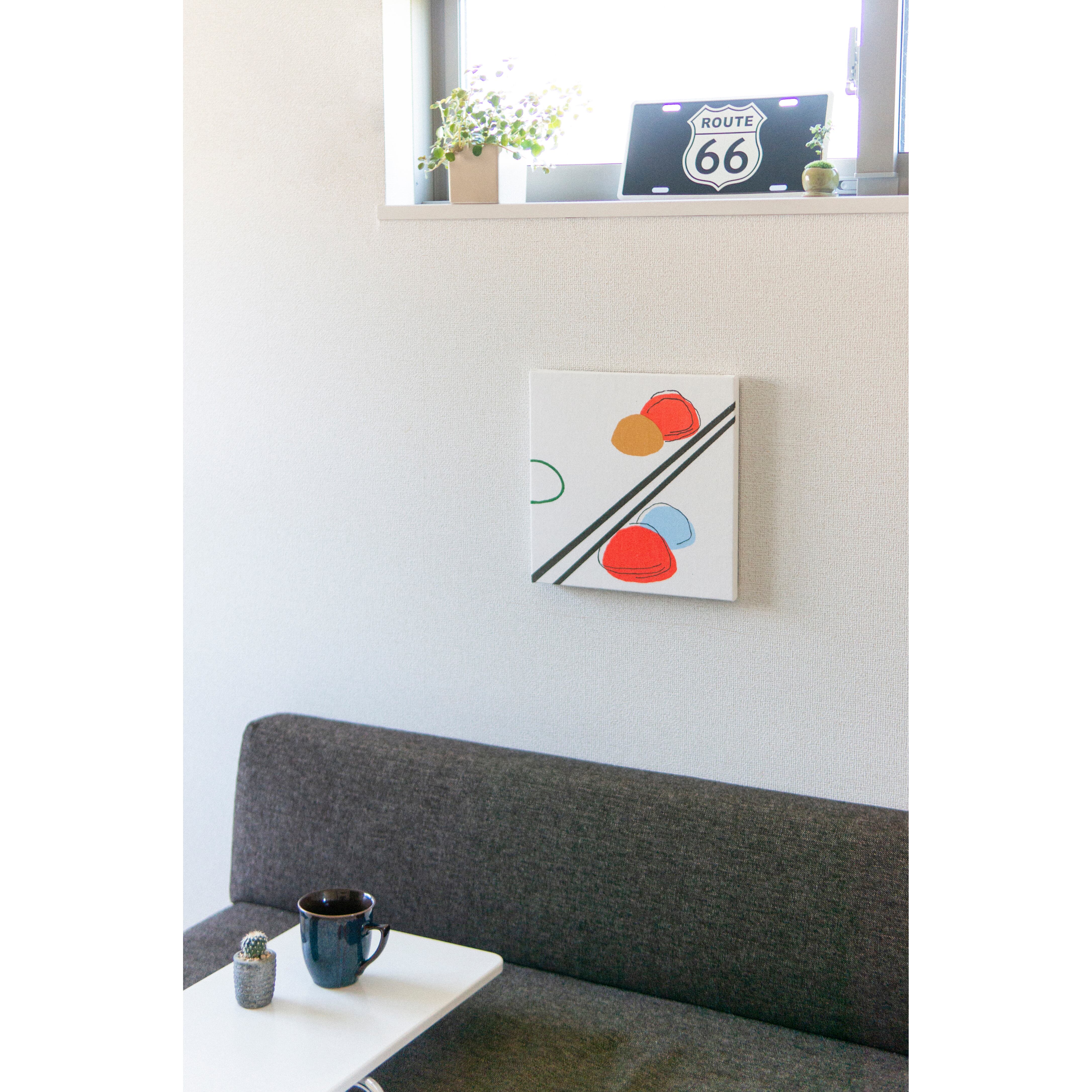 小ぶりな30センチ角のファブリックパネルです。
