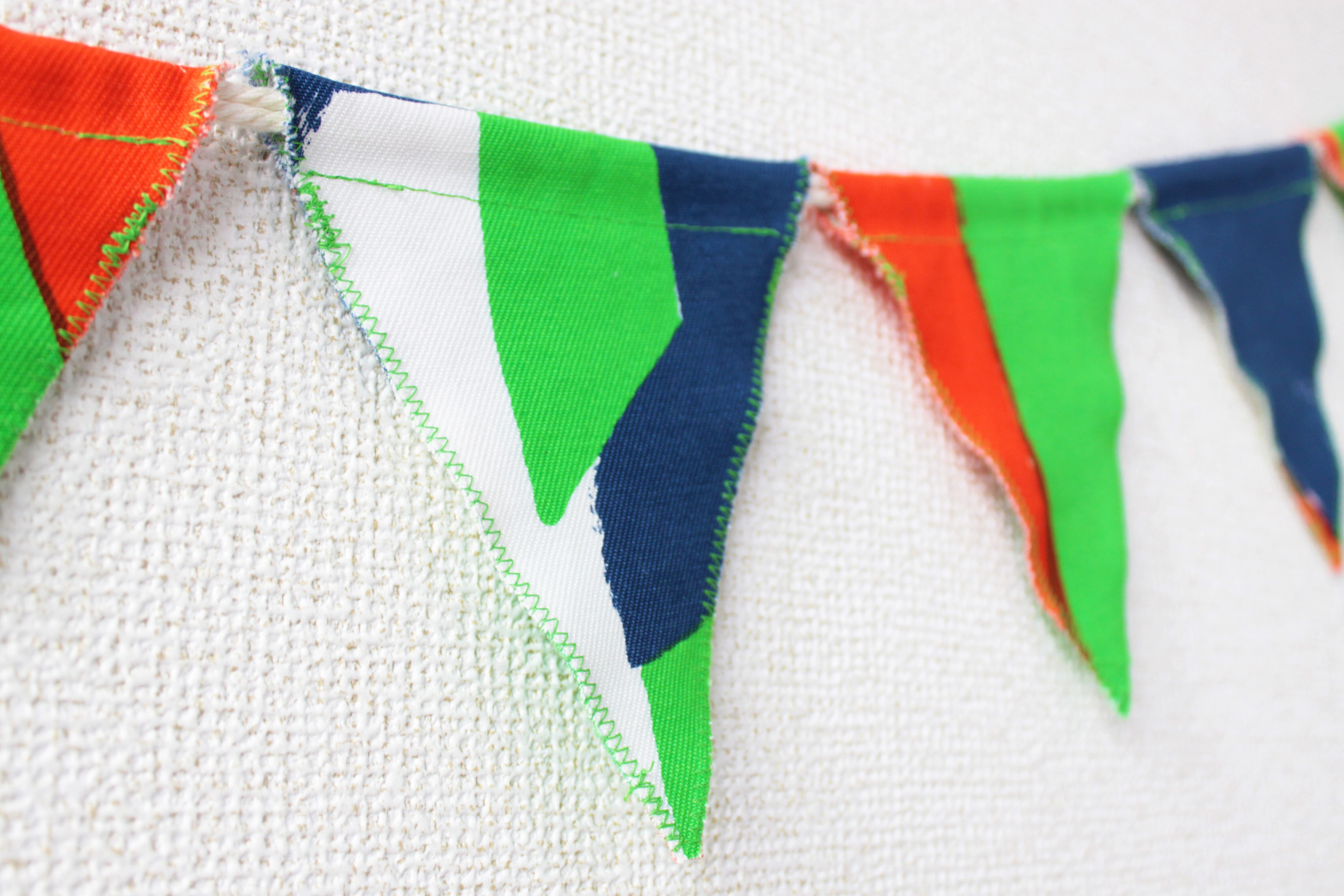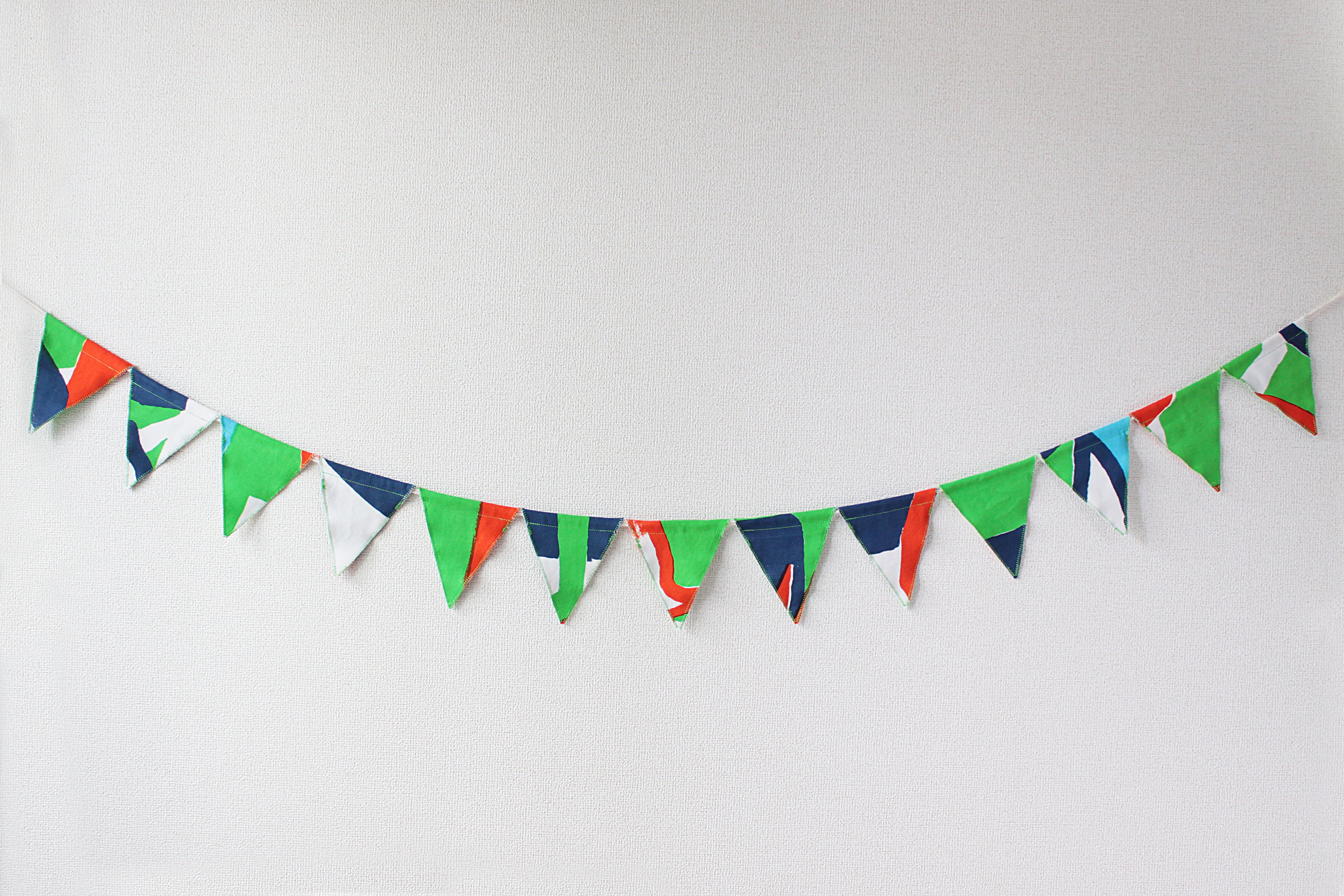 kalappoオリジナルテキスタイルで作った、一点物のフラッグガーランドです。